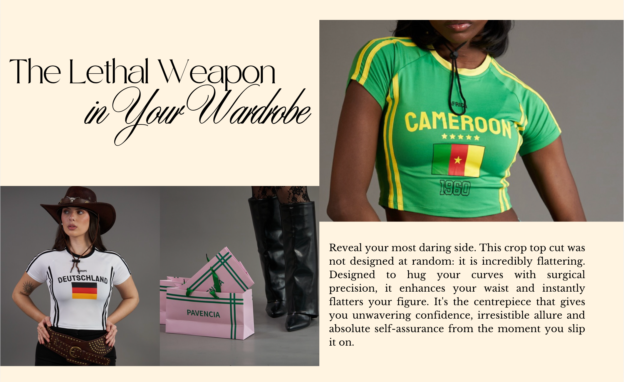 At PAVENCIA, we bring you trendy, retro-inspired crop tops designed for women who want to make a statement. Whether you’re repping your roots, cheering for your favorite team, or just adding a stylish edge to your wardrobe, our crop tops are the perfect blend of comfort and class.
